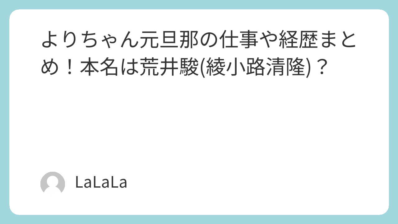 彼の本名は荒井駿(あらい しゅん)さんで、実はよりちゃんの元旦那でもあります。